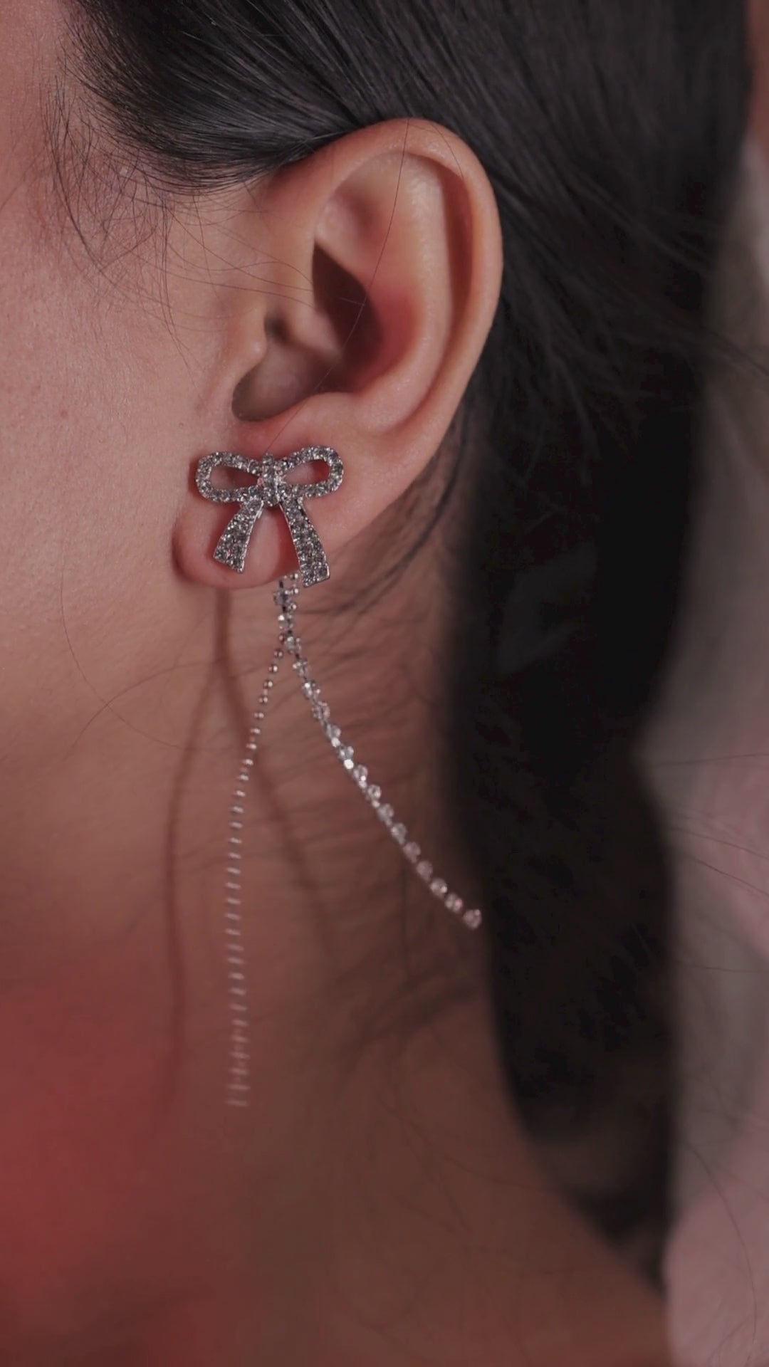This versatile 2-in-1 accessory delivers both a bold, elegant vibe for parties on one side and a charming, stylish appearance on the other. Featuring detachable silver tassels, these bows can easily transform into sleek studs for a polished, chic finish.