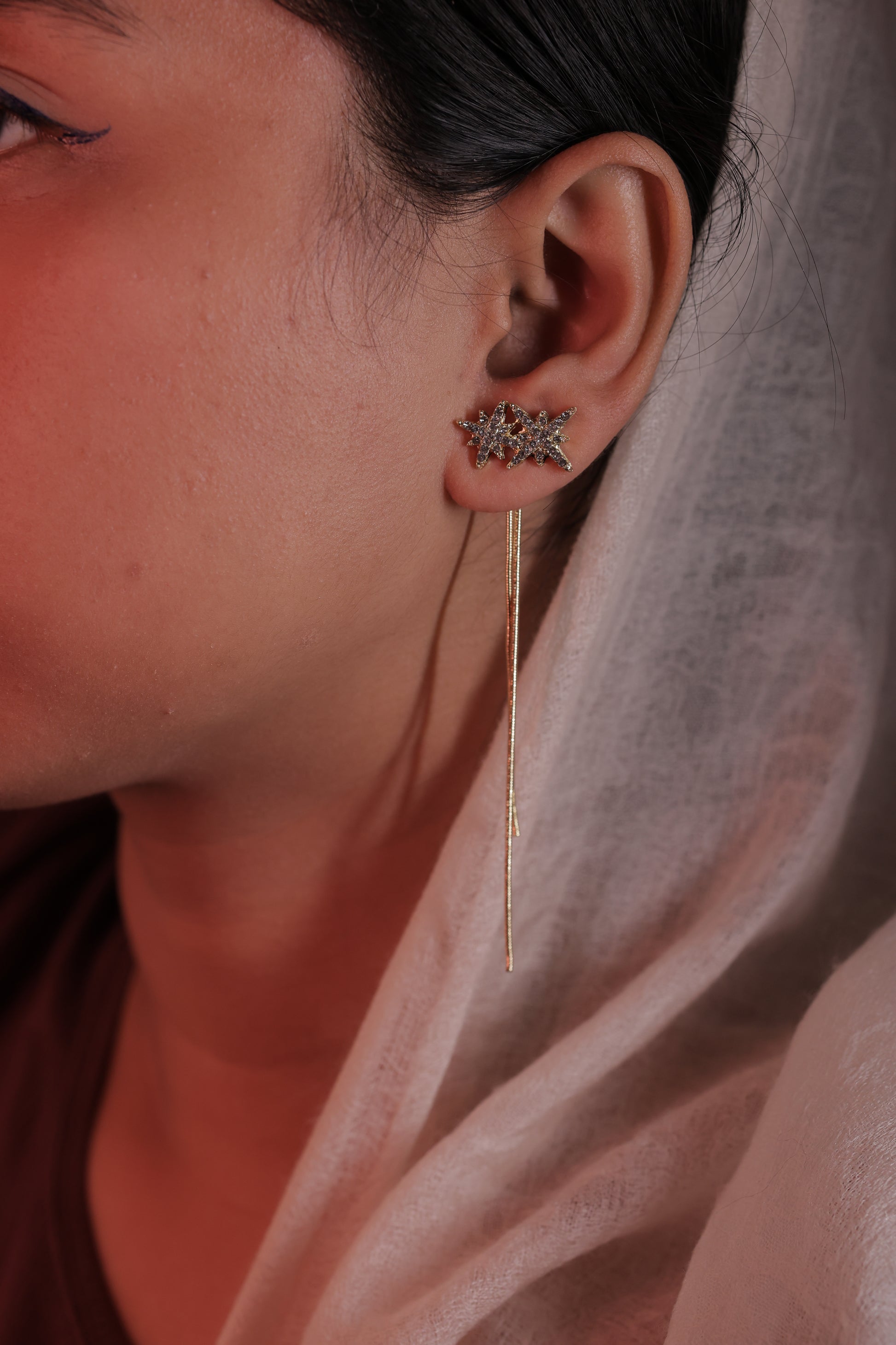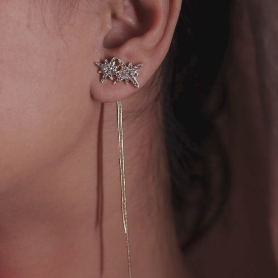 This versatile 2-in-1 accessory delivers elegance with a long, flowing style on one side and a sleek, minimalist design on the other. Detachable tassel strings allow you to transform the look, while the star elements can be worn separately as chic studs.