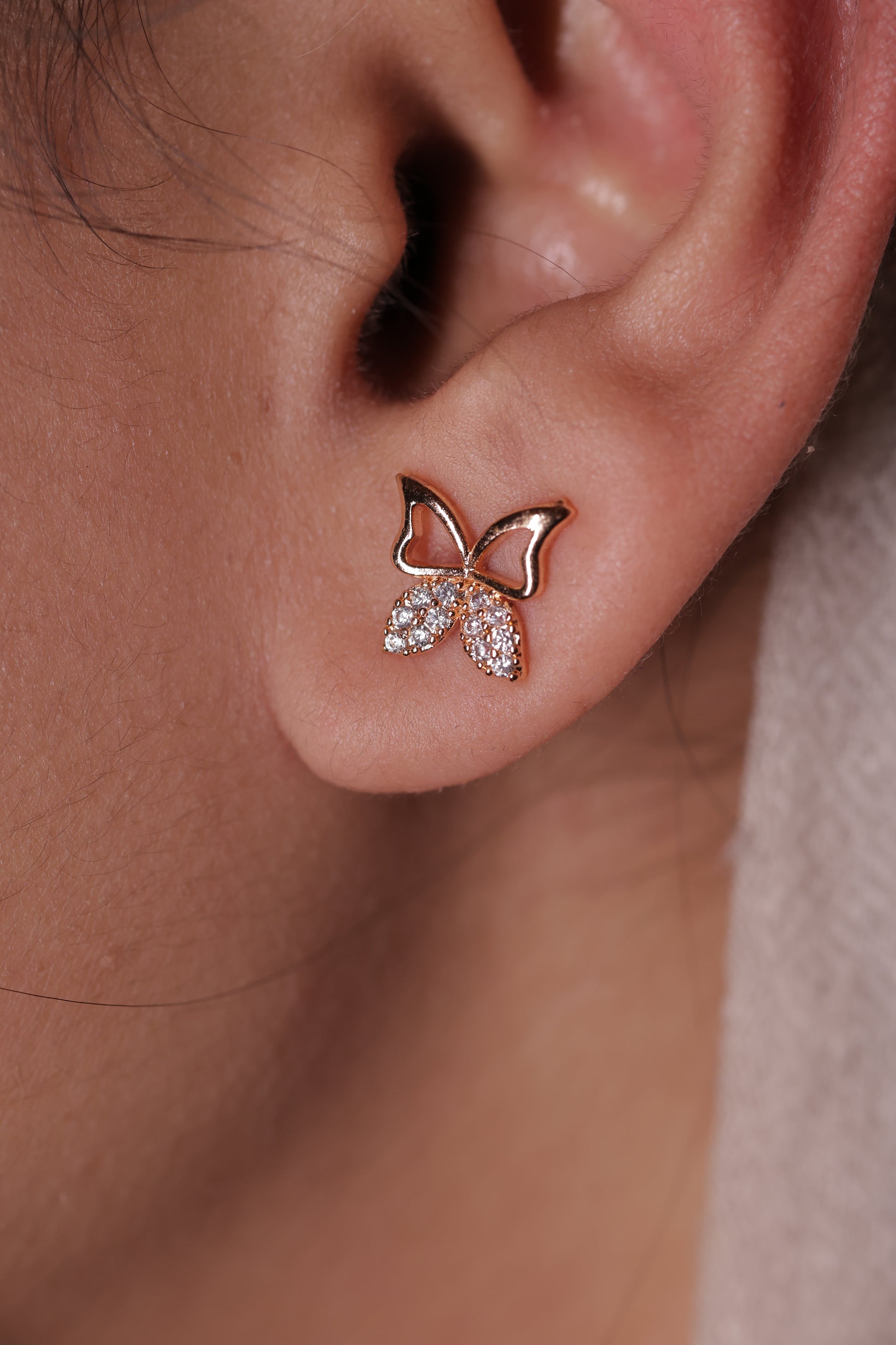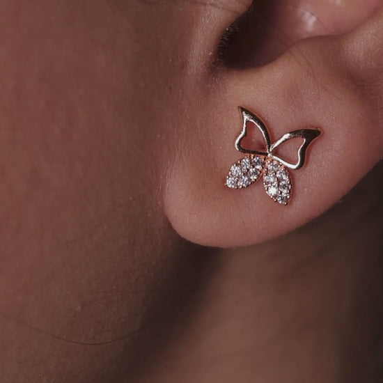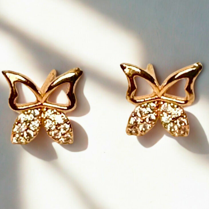 These 9.5 K gold-plated studs, embellished with sparkling zircon stones, deliver a beautifully simple and timeless elegance—perfectly crafted for all the butterfly girlies.