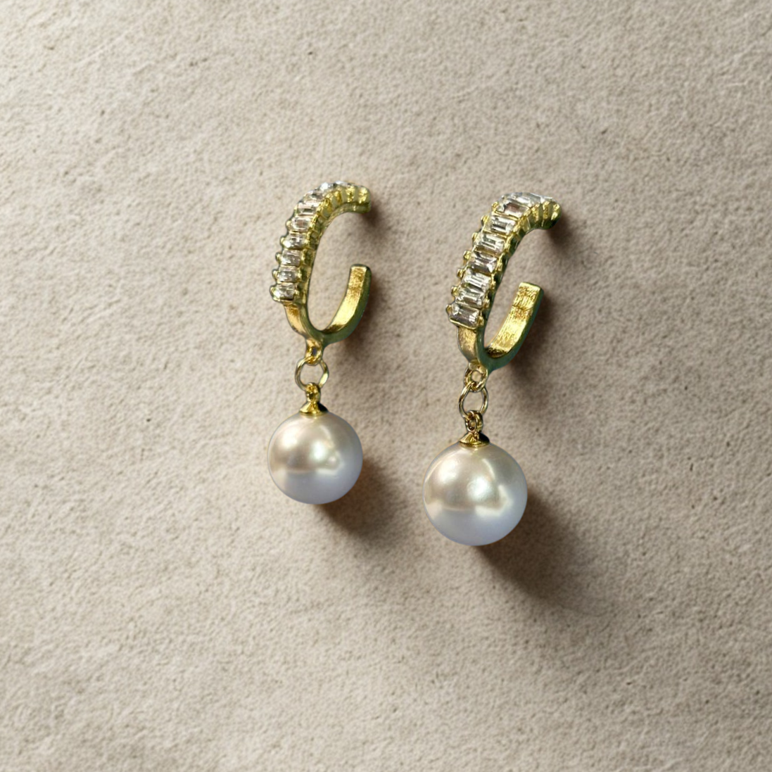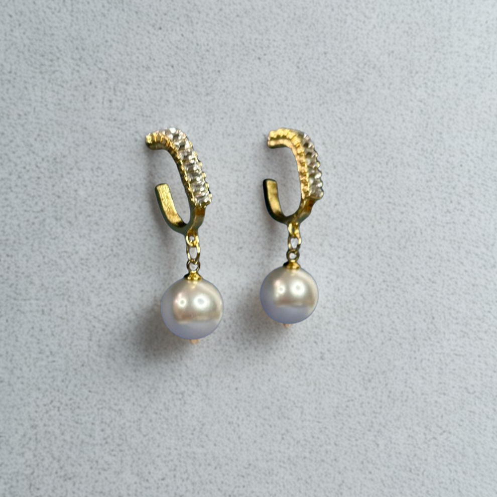 Experience elegance with these distinctive oblong golden hoops, featuring sparkling premium zircon accents and charming pearl drop details that elevate any look.