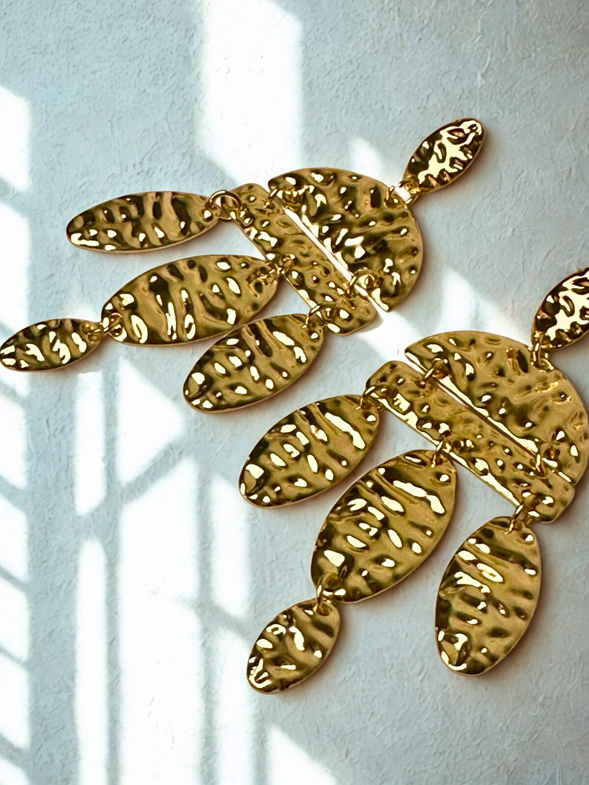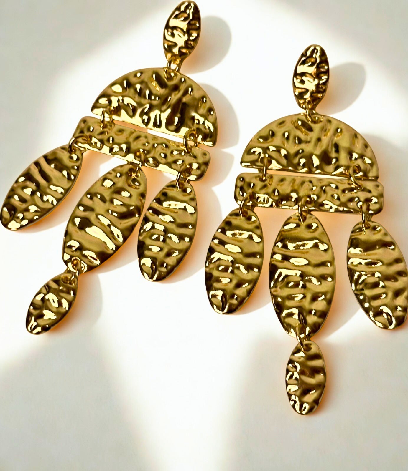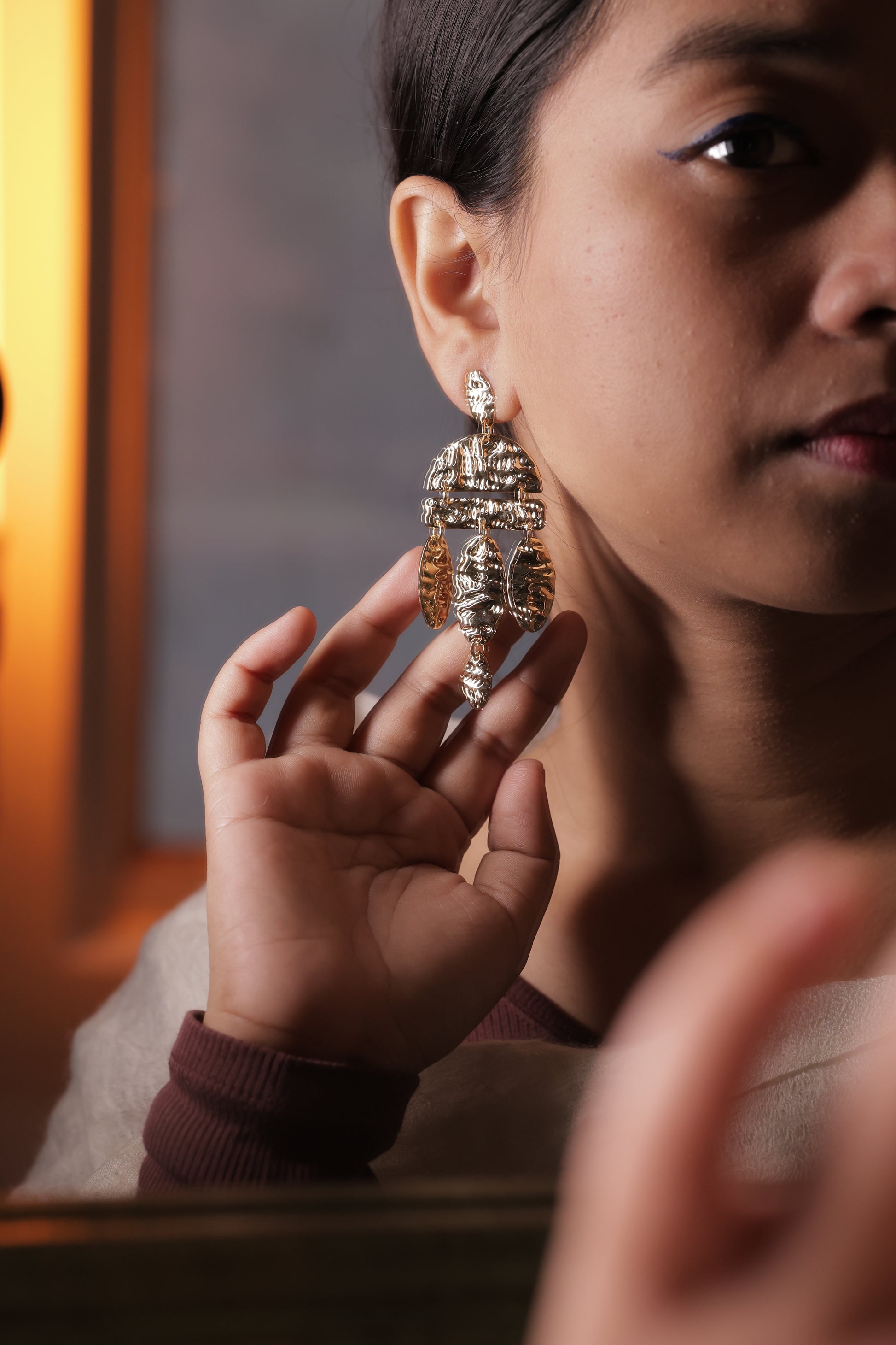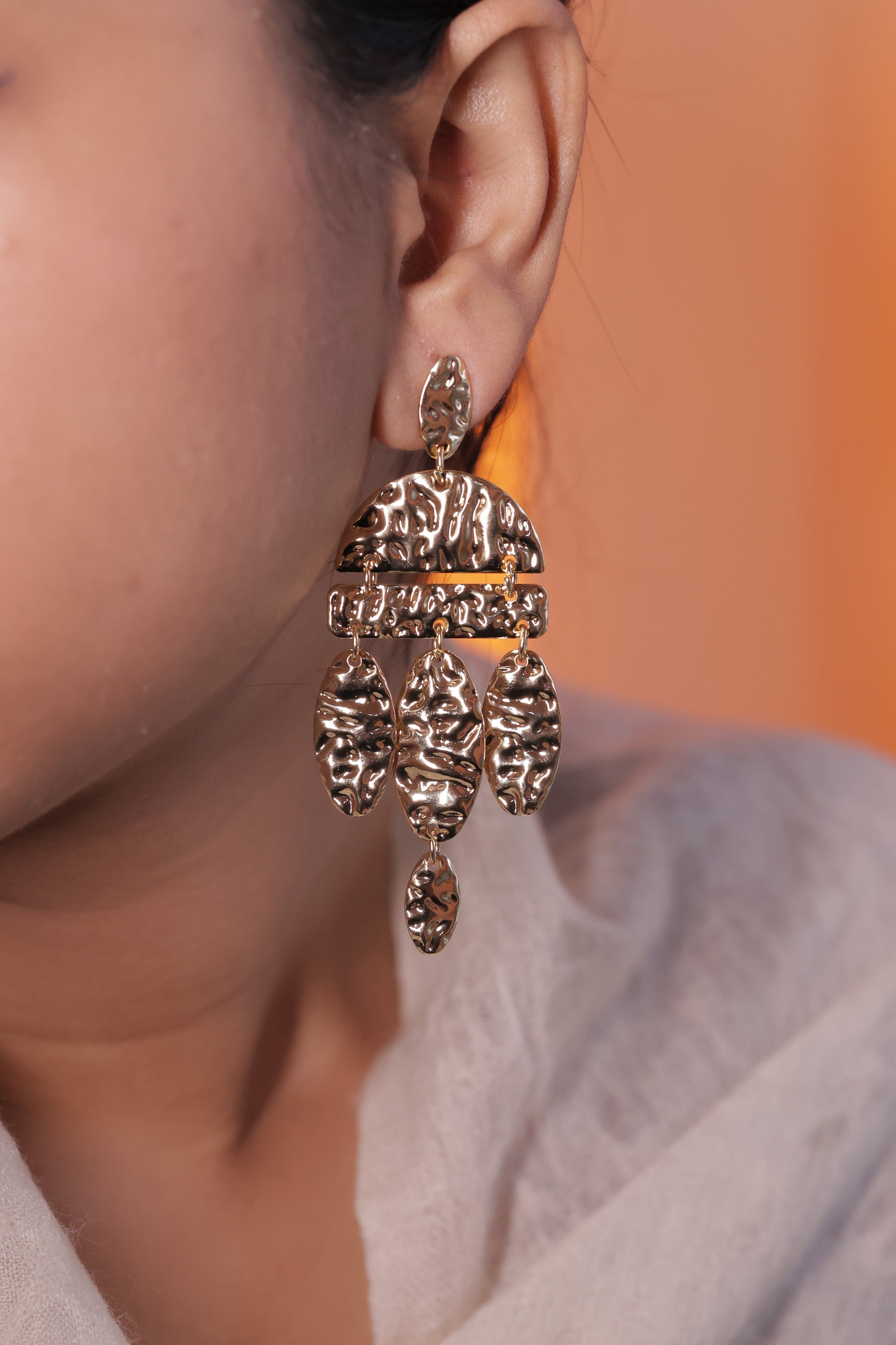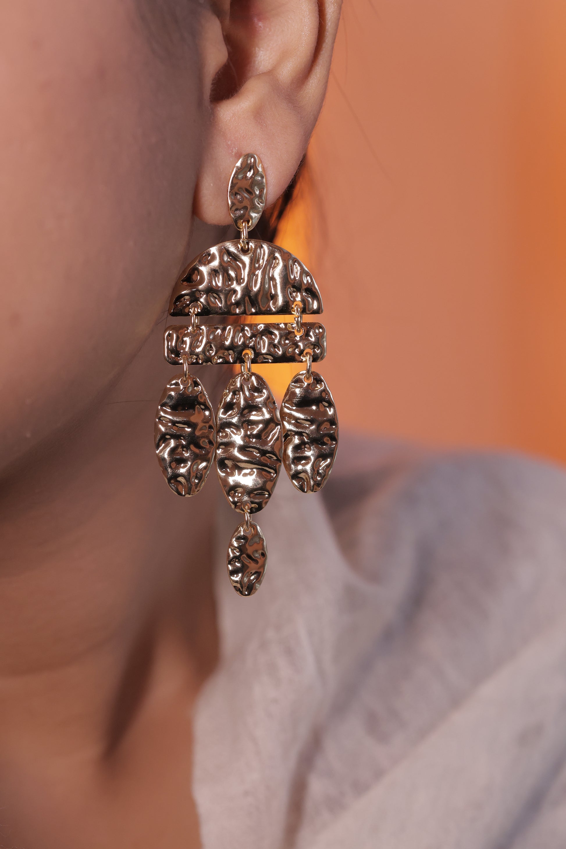 Crafted from copper, these standout pieces feature a blend of geometric designs on a golden base, creating the perfect funky yet elegant style for lively girls seeking a unique statement.