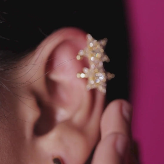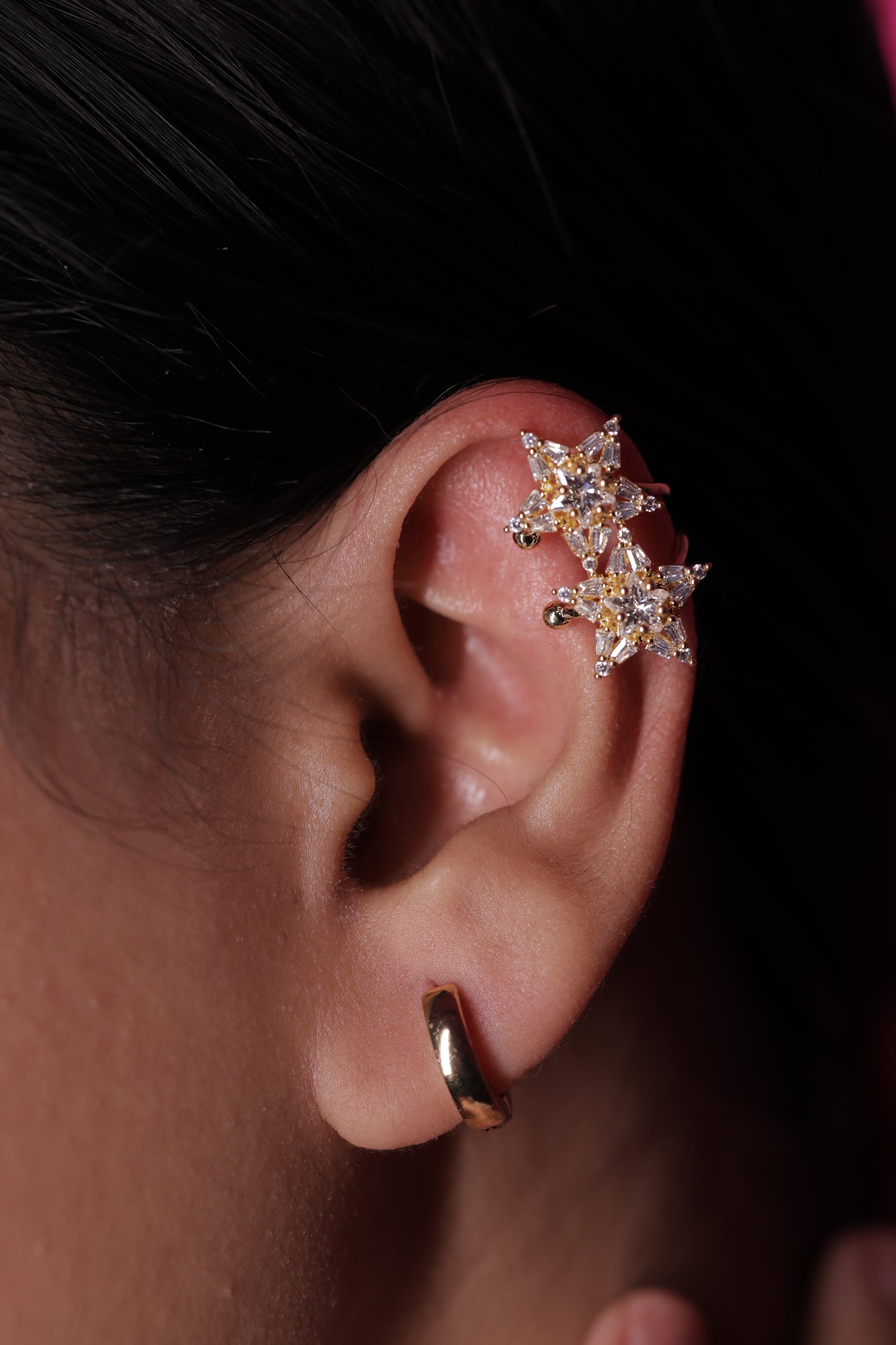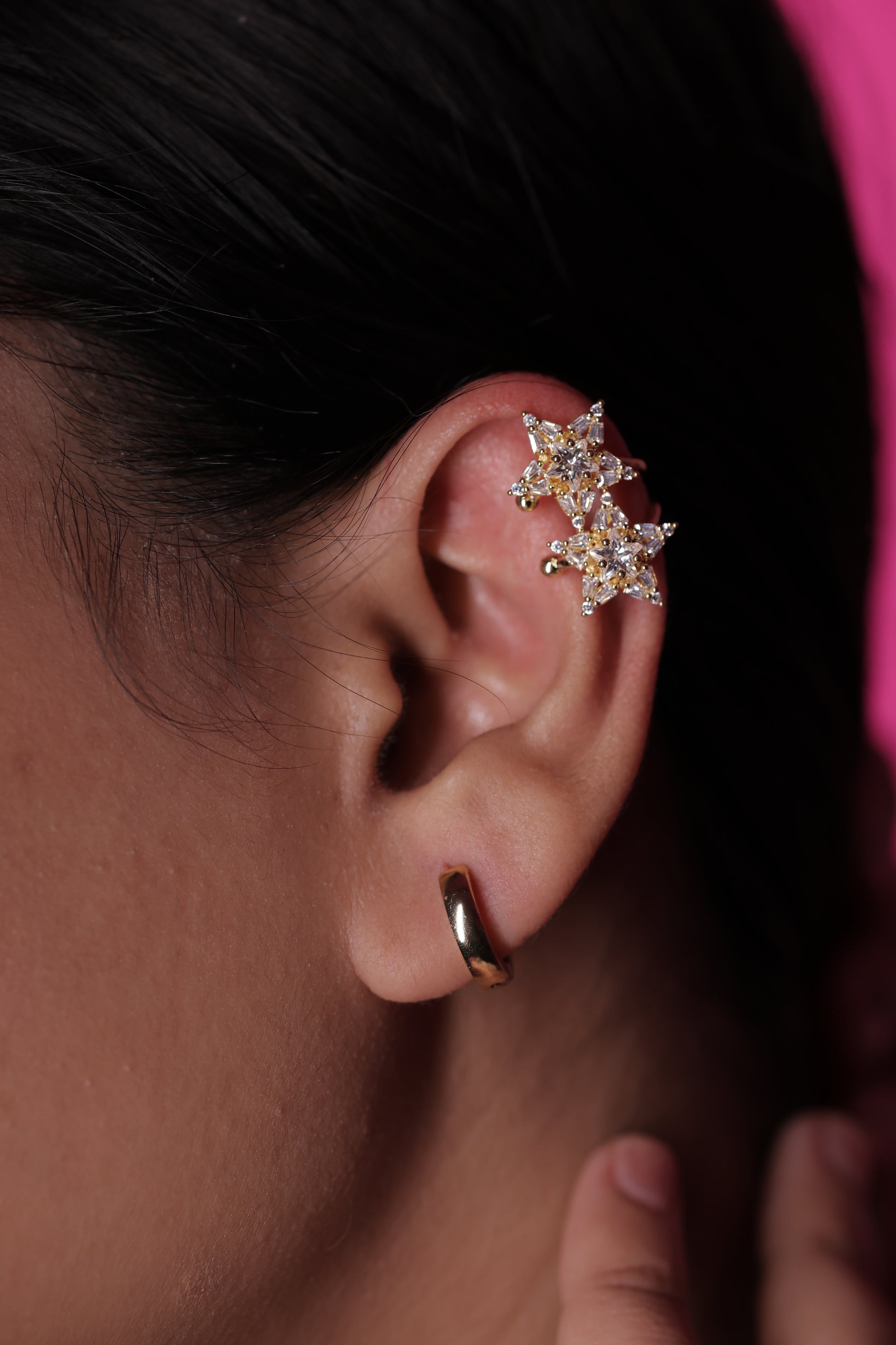Anti-tarnish alloy and imported stones ; Single piece earcuff; Bold and a very celeb-glam look!