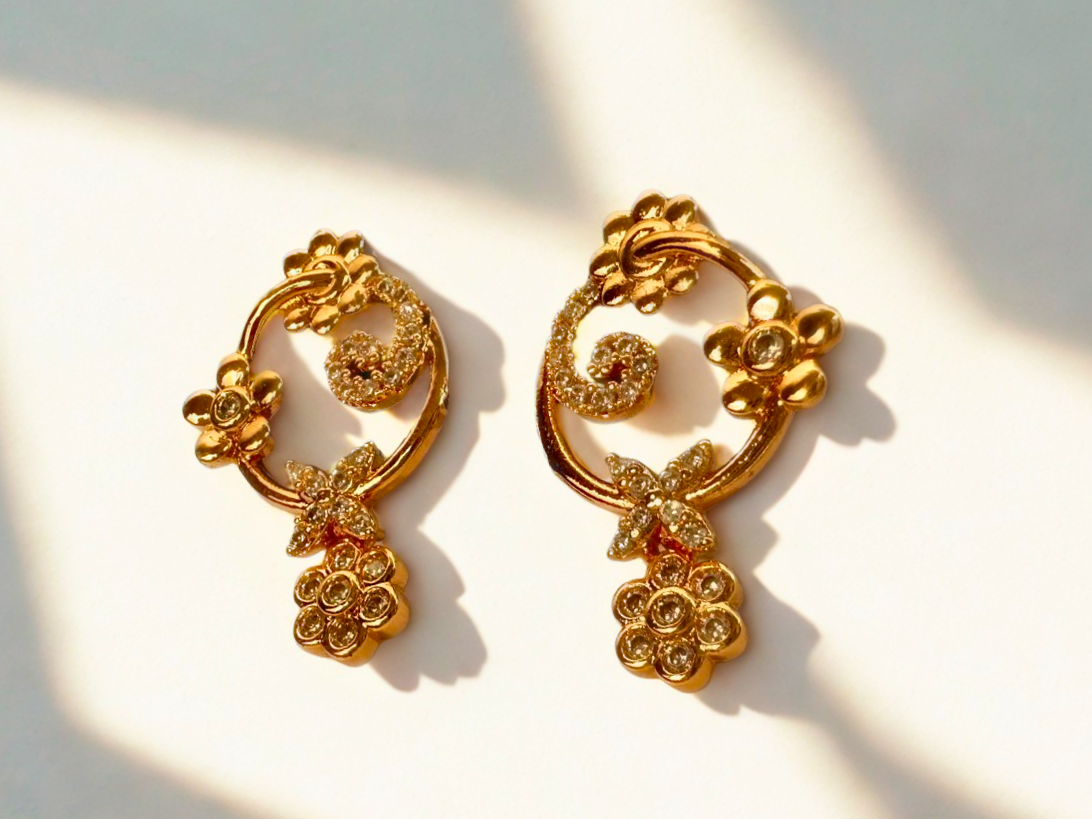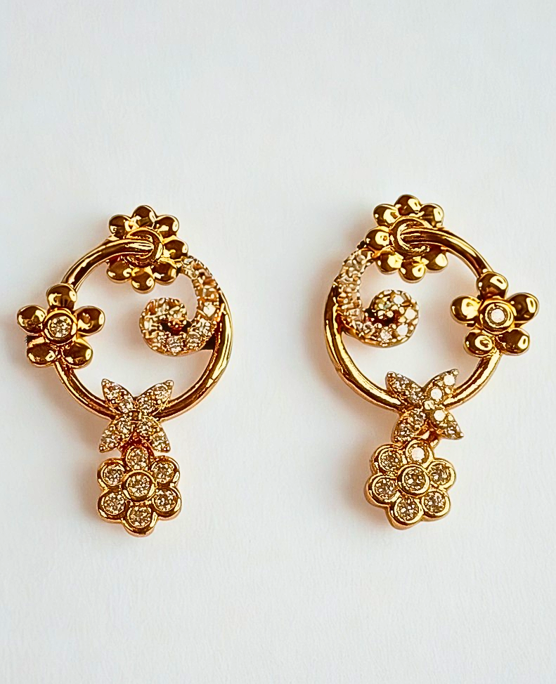 These mini loops, plated in 9.5K gold and adorned with premium zirkons, showcase delicate floral designs combined with uniquely styled swirls, perfect for women who embrace elegance with a lively, spirited flair.