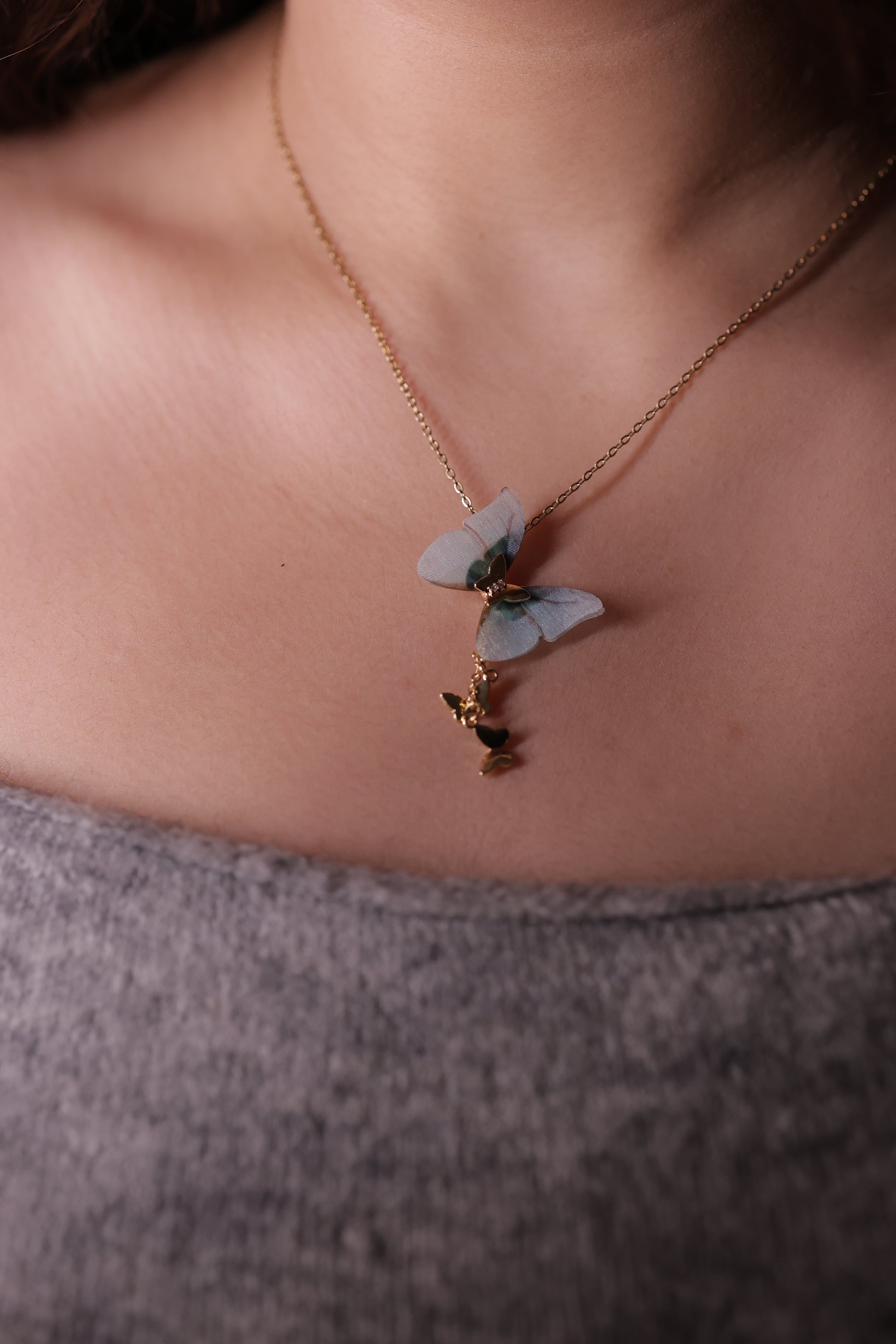 Embrace your untamed spirit with this captivating butterfly charm, designed for the fearless woman who refuses to blend in. Featuring delicate fluttering butterflies suspended on a durable anti-tarnish chain, this piece celebrates your bold individuality and free-spirited nature.