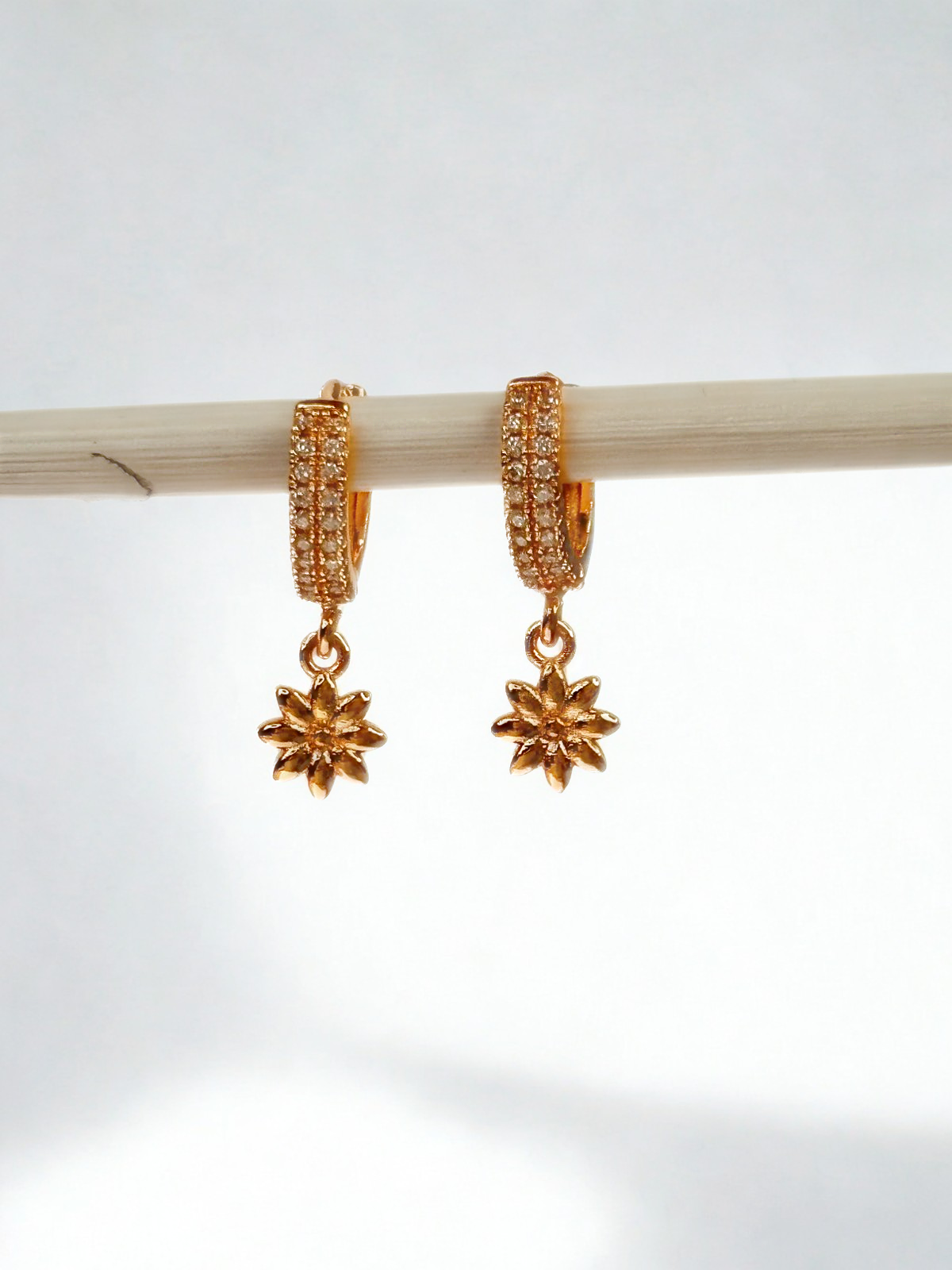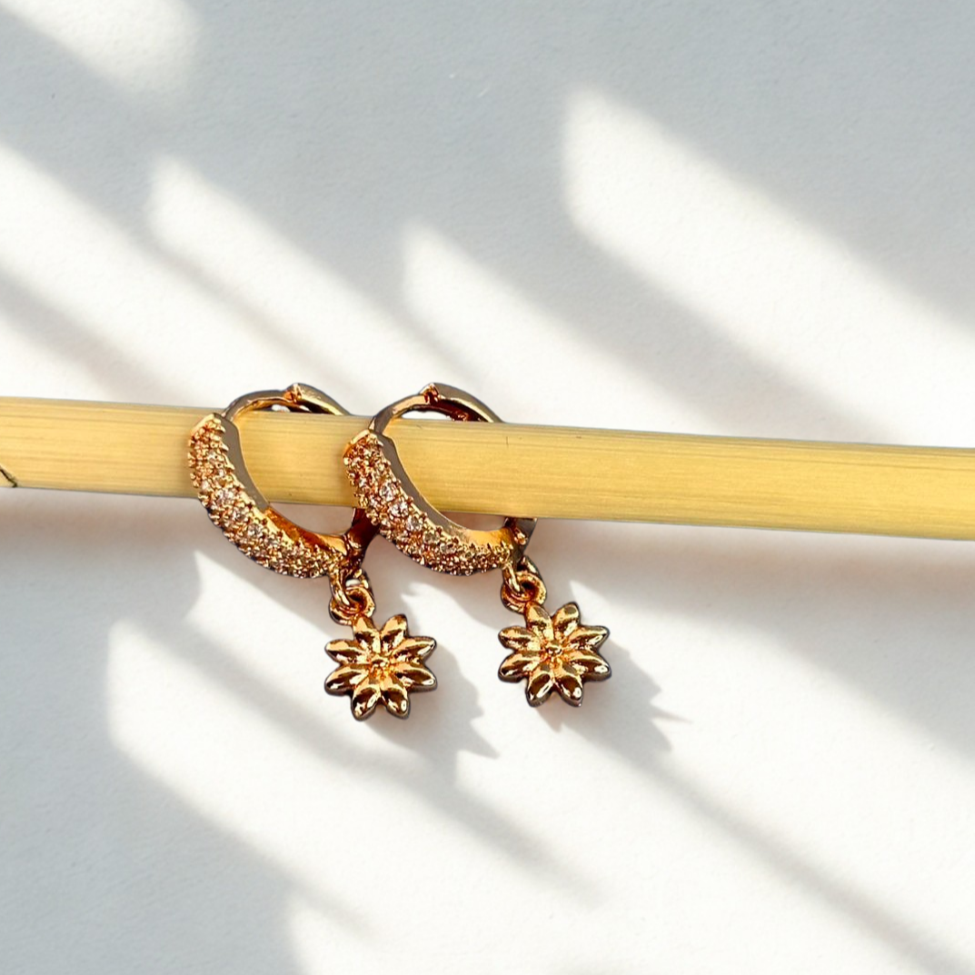Discover the charm of Gloria, mini loops plated in 9.5K gold and encrusted with premium zircons, featuring elegant gold-plated starry drops. This classic and sophisticated design effortlessly enhances any outfit, making it perfect for every occasion.