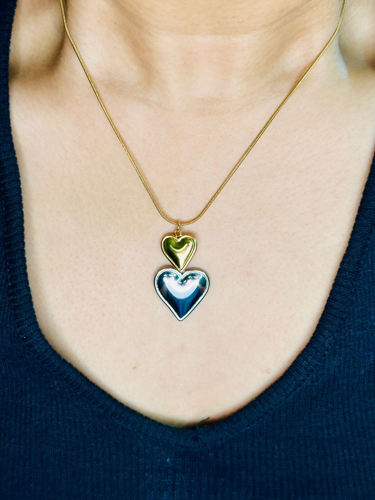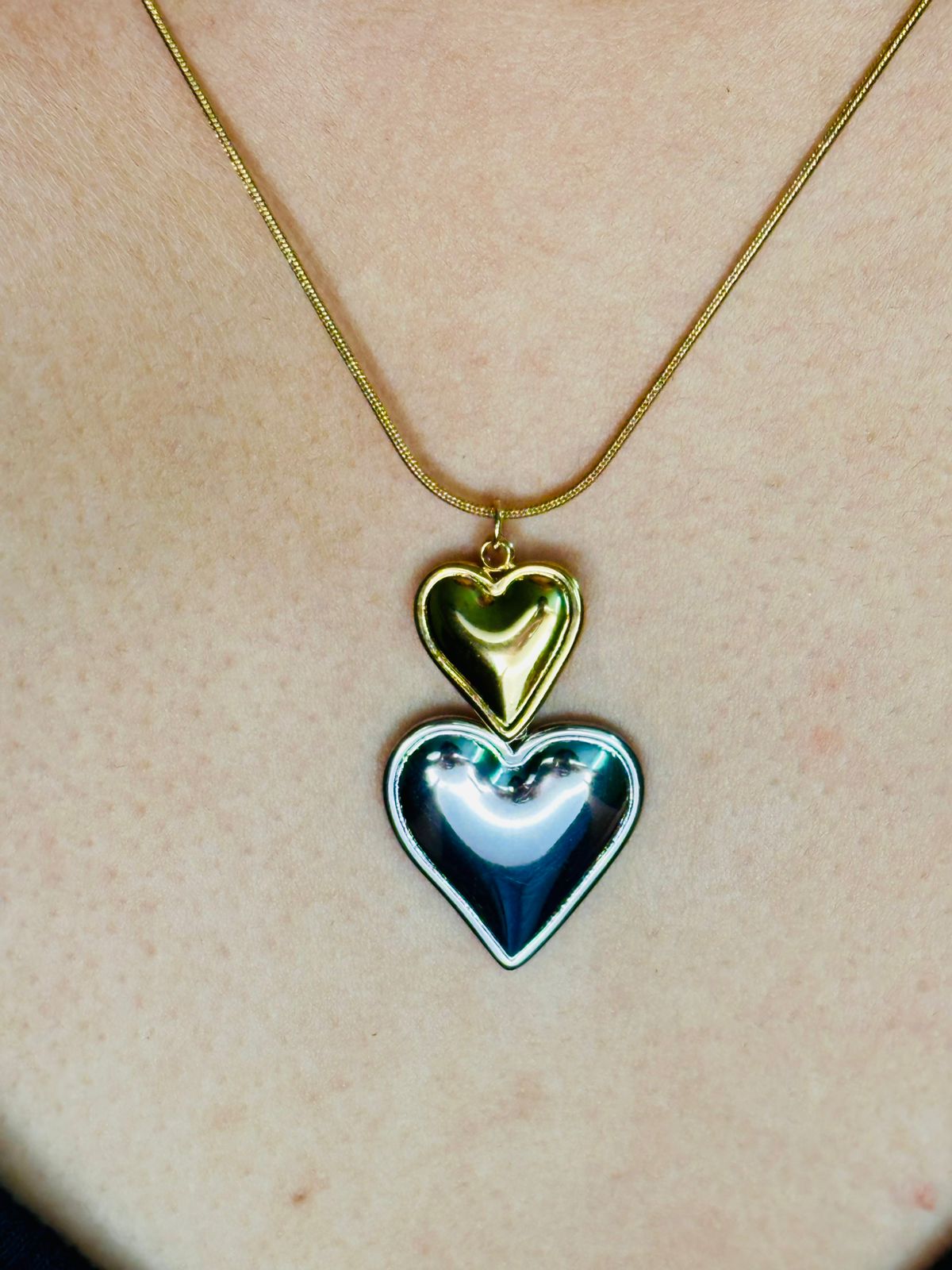 Featuring mesmerising golden and silver accents, the hearts catch the light beautifully while the premium anti-tarnish chain keeps them looking pristine. Designed for those who crave sophistication without sacrificing edge.