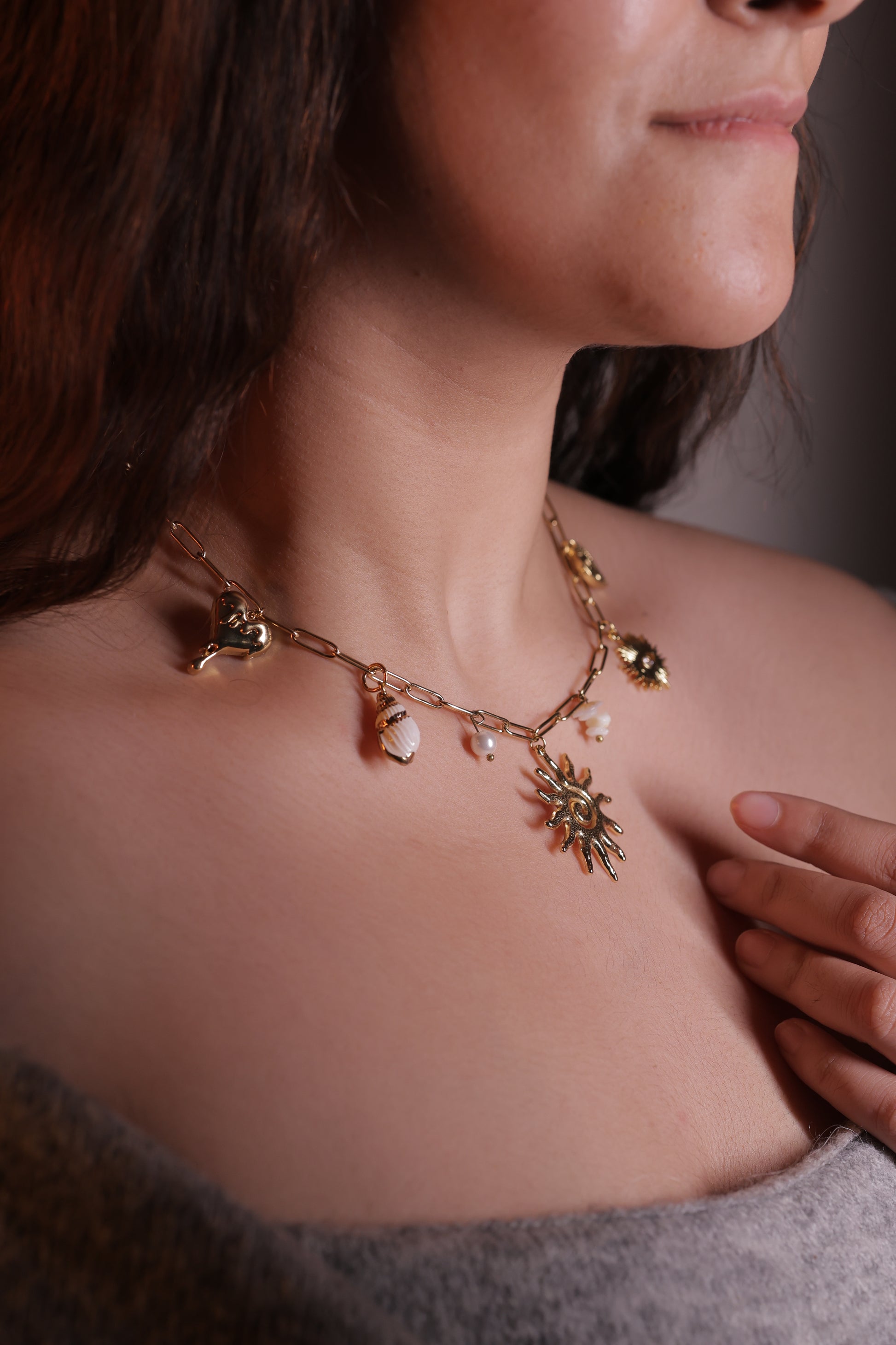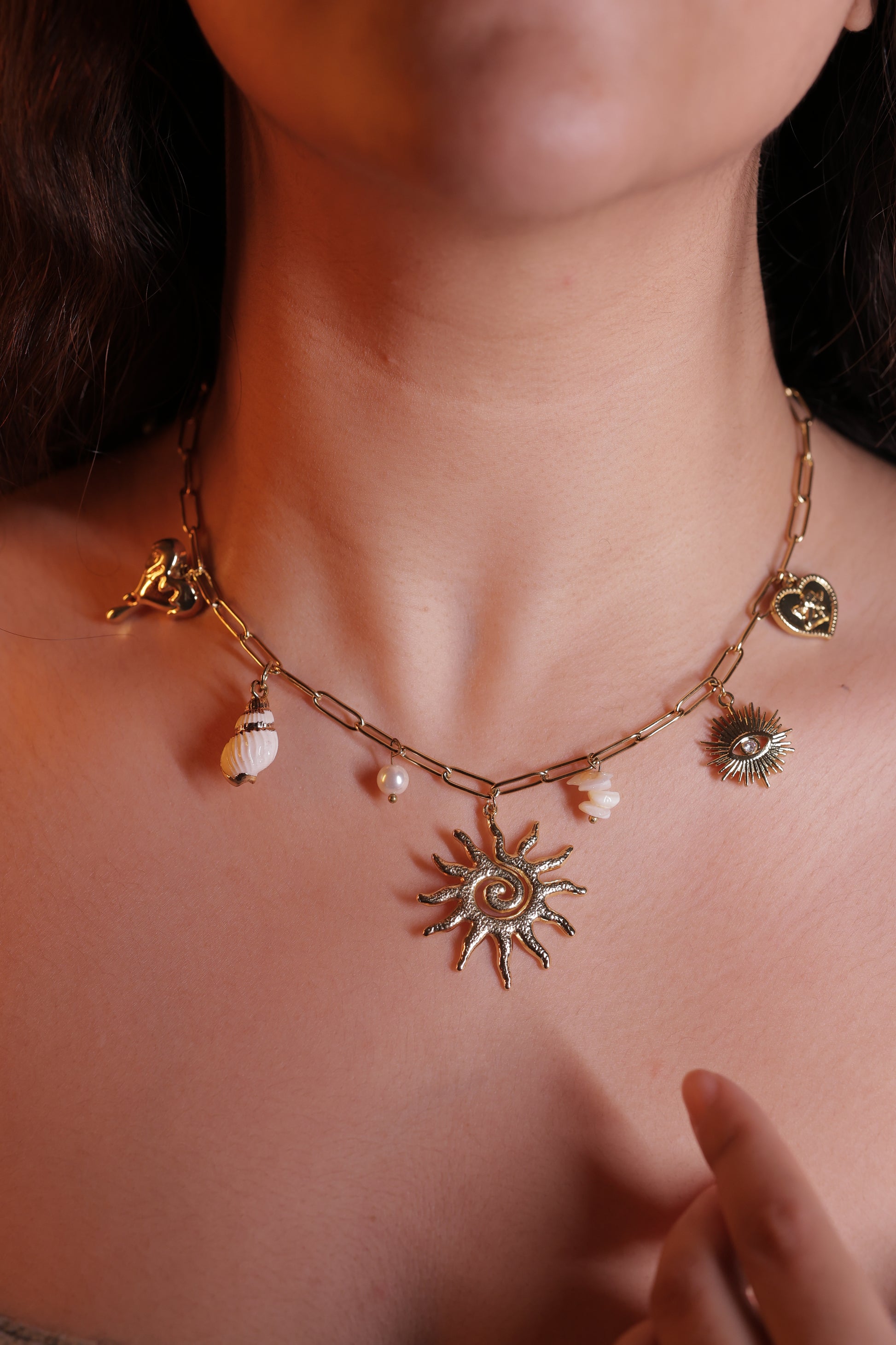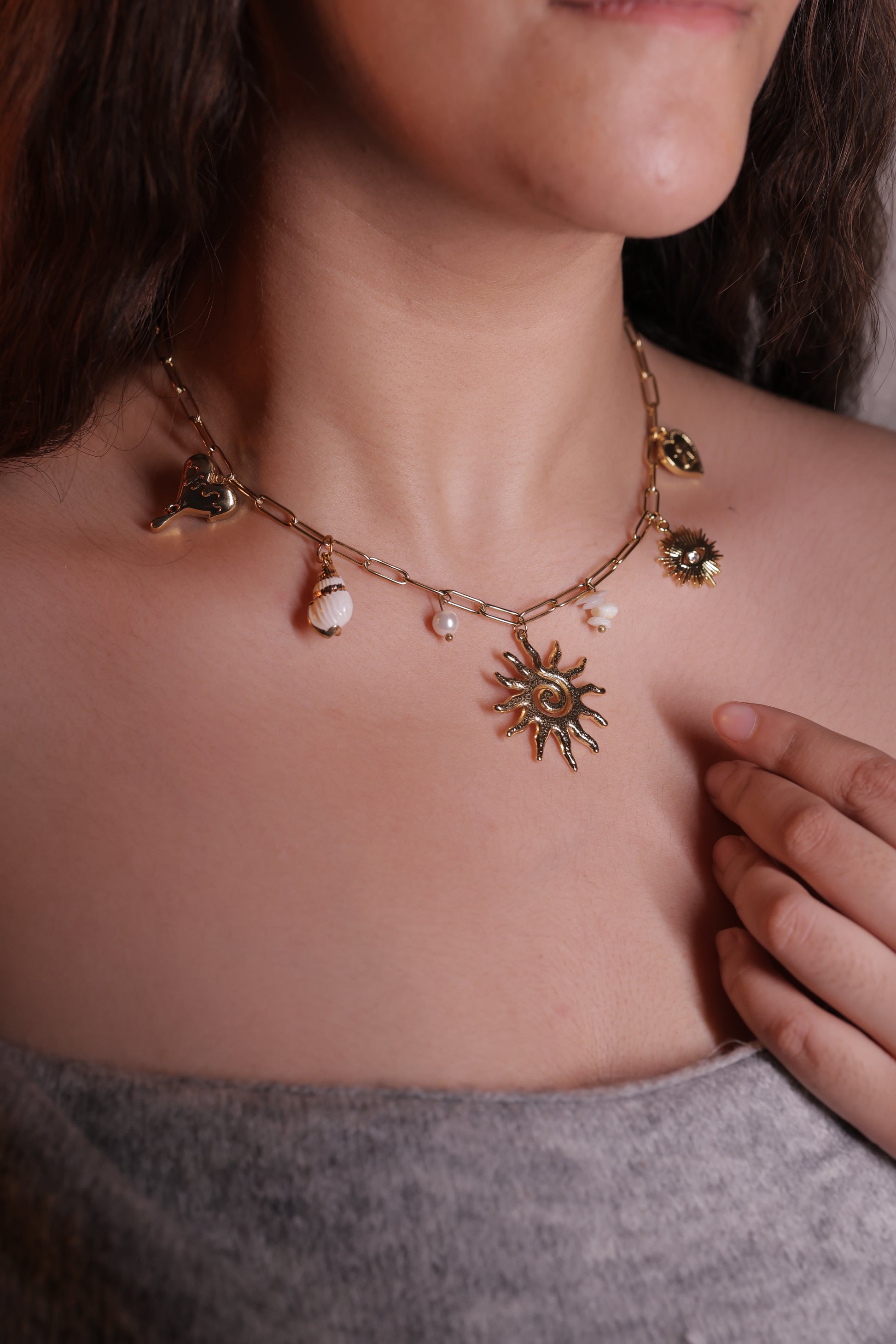100% anti-tarnish, made with golden tone alloys, with 3 unique shell charms placed at the centre- making a classy yet tropical look , surrounded by high-quality, cute charms to add to your tropical dive glam!