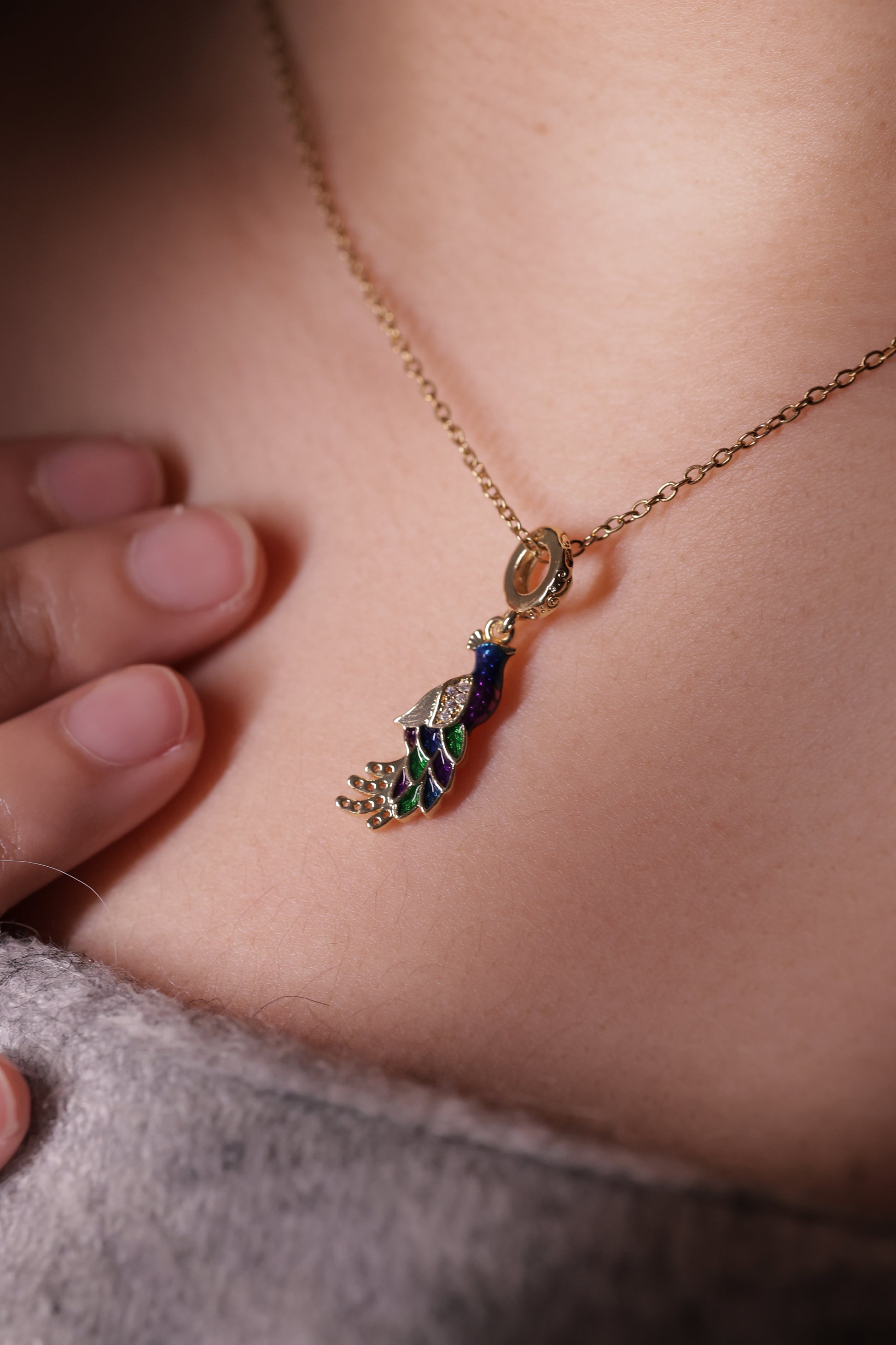 a uniquely crafted peacock charm with elaborate detailings to bring the beauty of an elegant being to life! made with imported alloys and enamel colors; 100% anti-tarnish