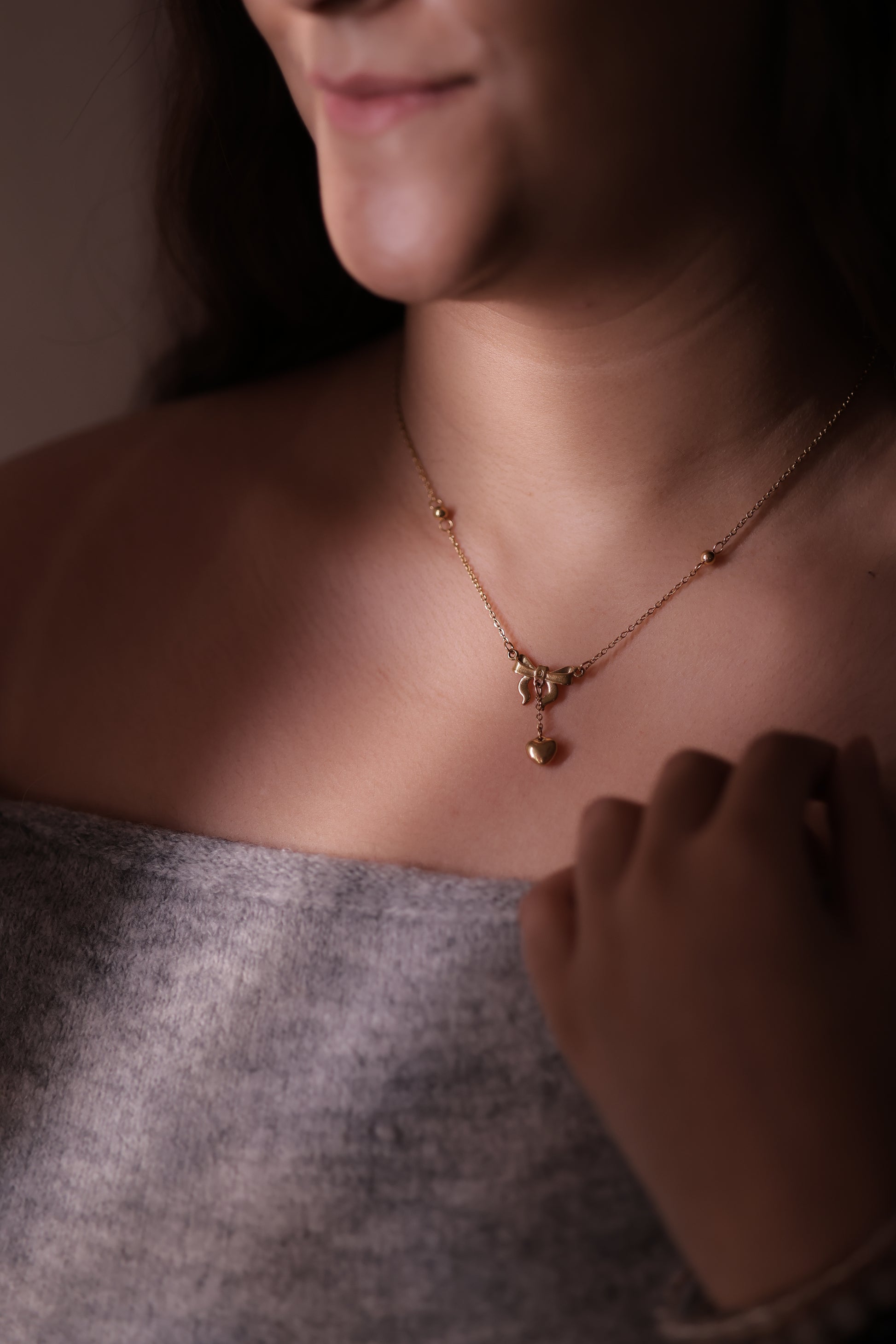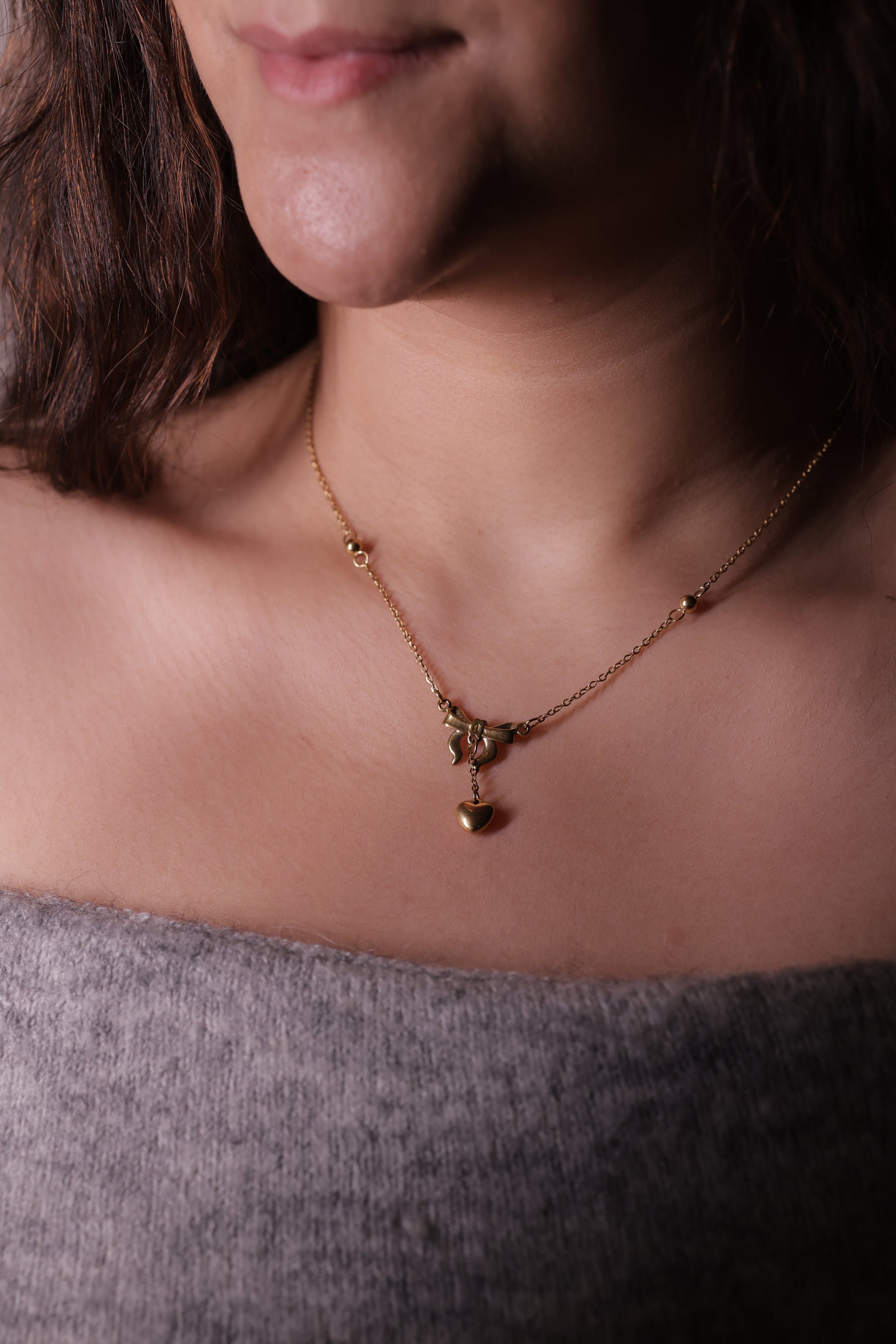 100% anti -tarnish, golden alloys, a mid side bow at the centre with a small heart dangling right below it; Stella is an ideal pick for those looking for a girly , minimal yet a stand out piece
