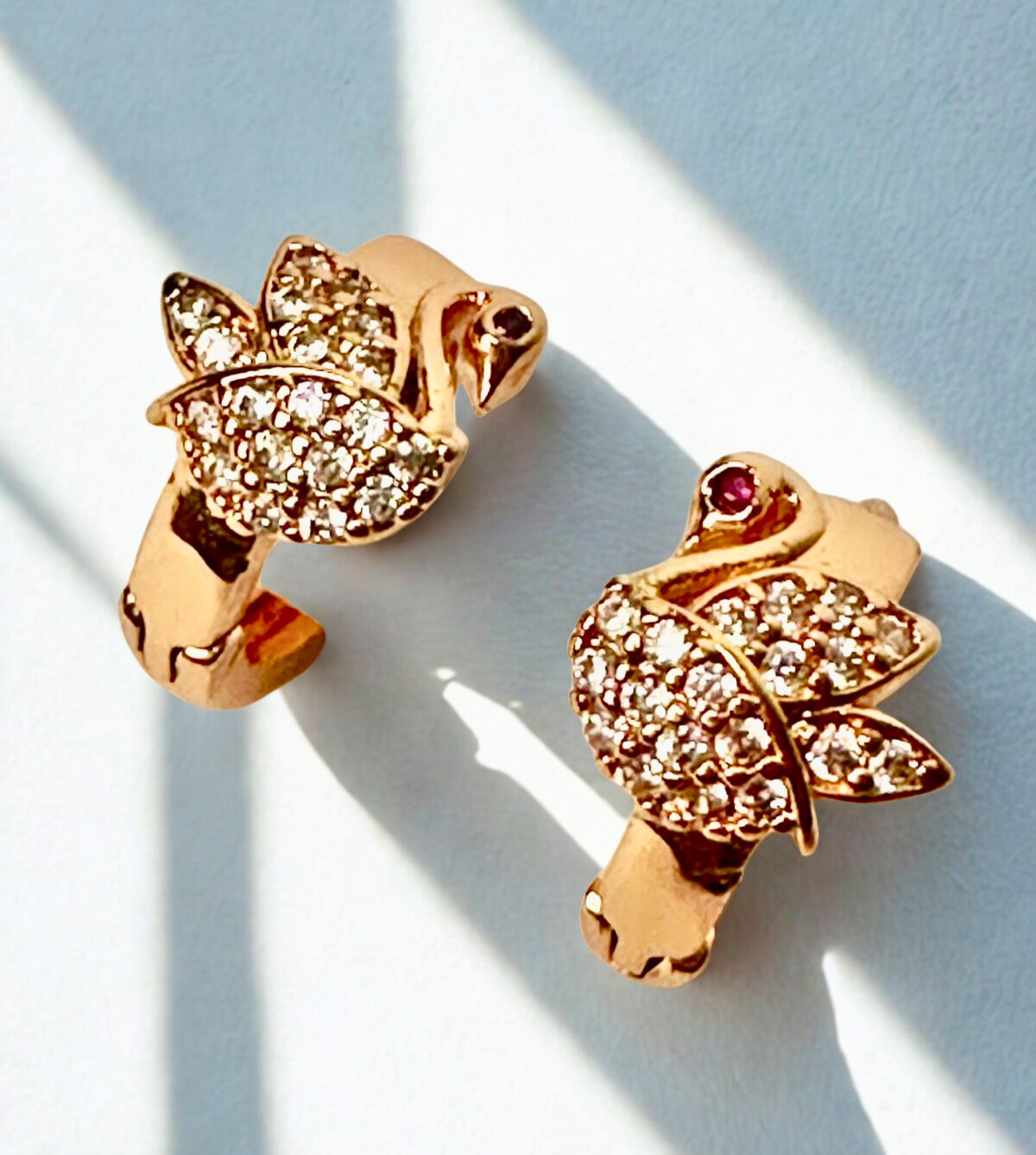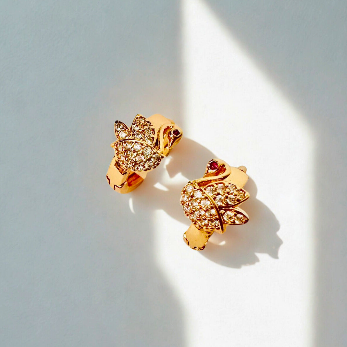Adorn yourself with the Swan Dazzle—9.5K gold-plated swan-shaped loops encrusted with sparkling zircon, effortlessly combining graceful charm with bold simplicity.